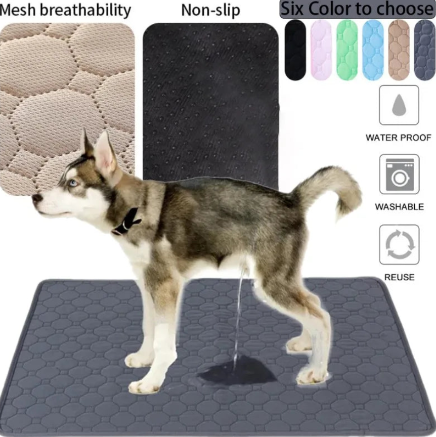 Say goodbye to disposable pads! This reusable training pad is designed with four layers of protection: a soft, breathable top layer that wicks away moisture, a highly absorbent core, a waterproof inner barrier, and a non-slip bottom to keep it securely in place. It quickly absorbs and locks in liquid to prevent tracking and odors. Perfect for puppy training, lining crates, protecting car seats, or for older dogs with incontinence. It's durable, machine washable, and built to last, saving you money and reducing waste.